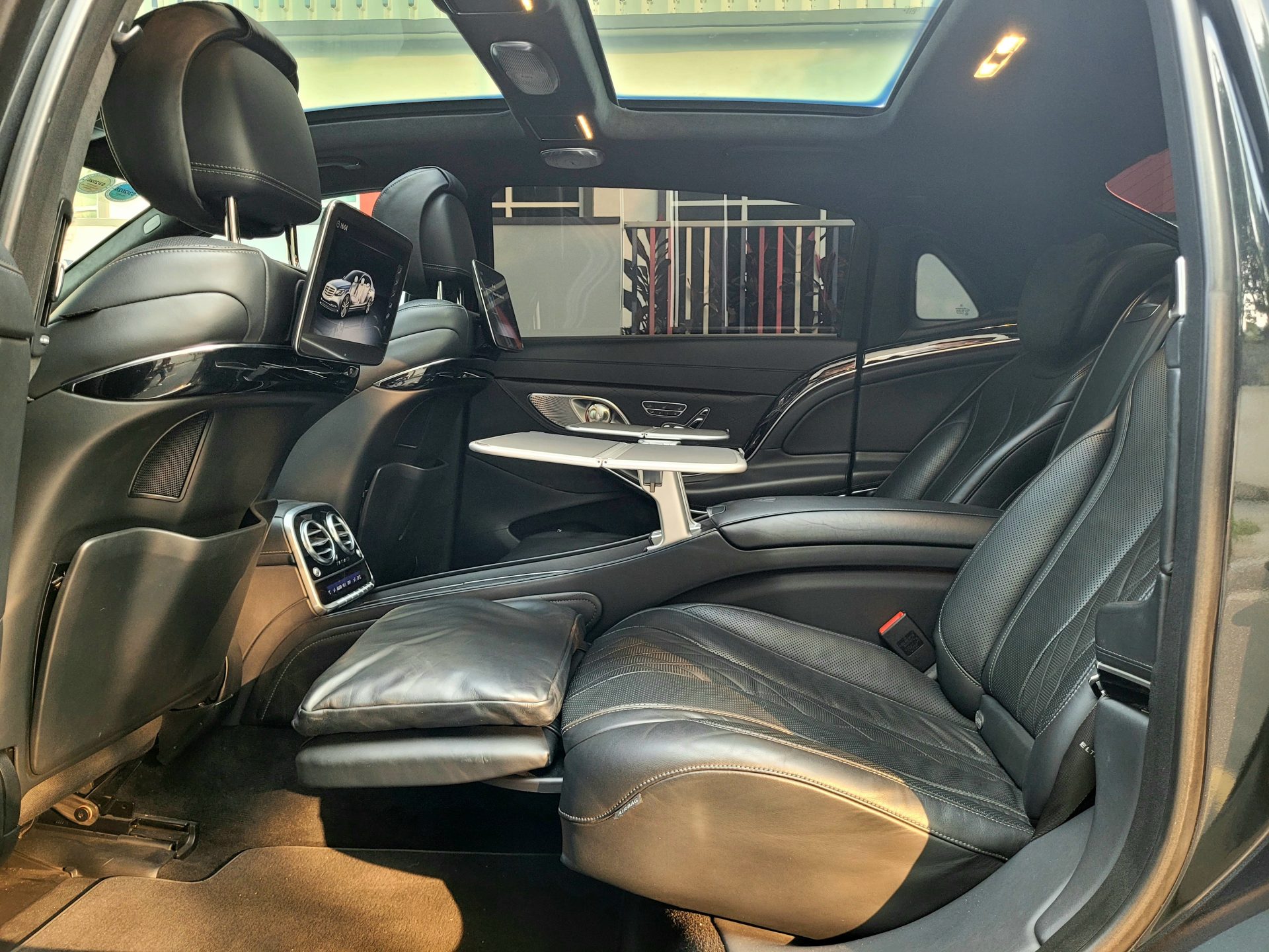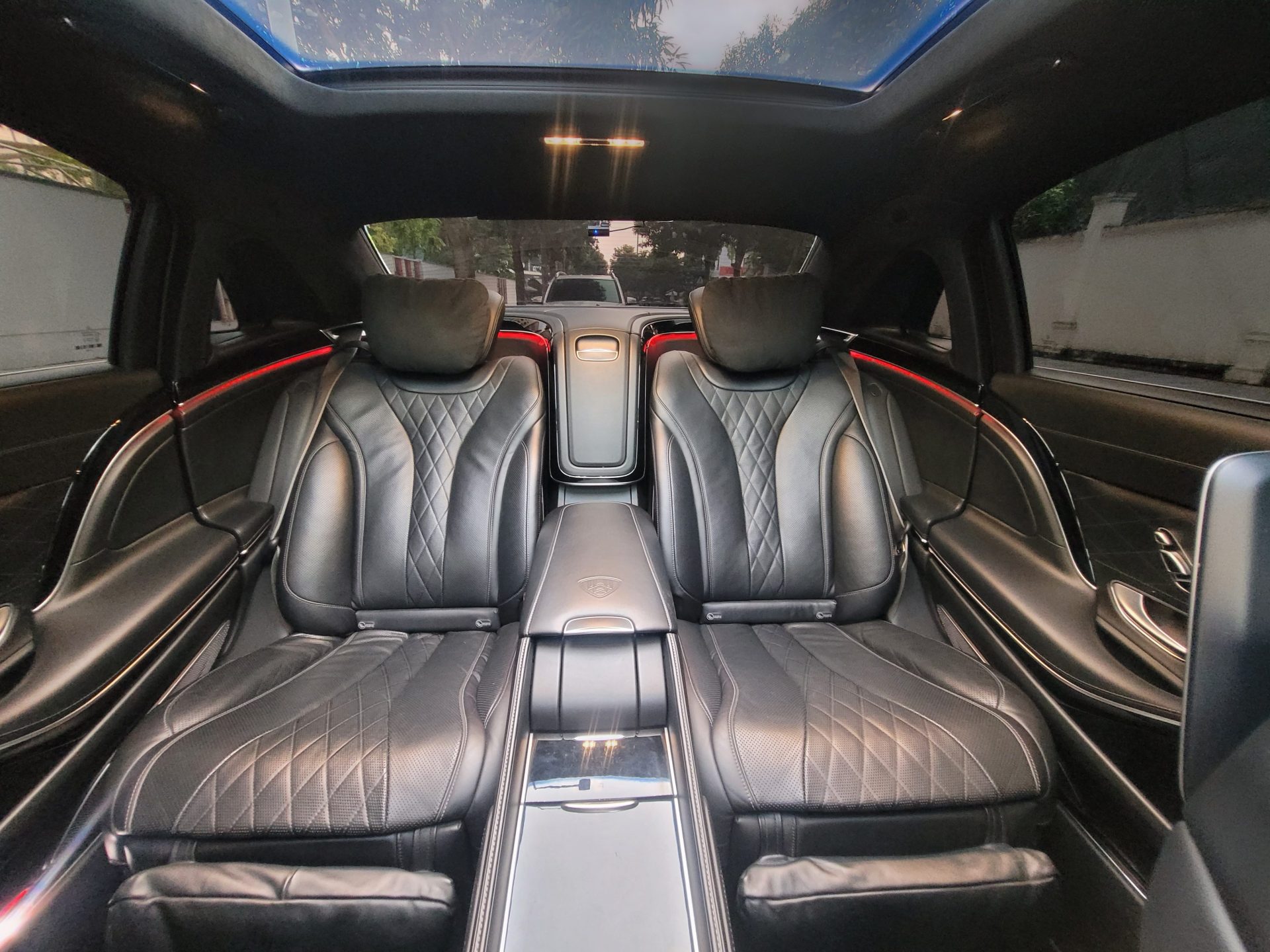– Hàng ghế sau của Maybach sử dụng ghế thương gia, khả năng chỉnh điện, massage, bệ đỡ chân,.. Bàn làm việc gấp gọn, tủ lạnh, ly sâm panh